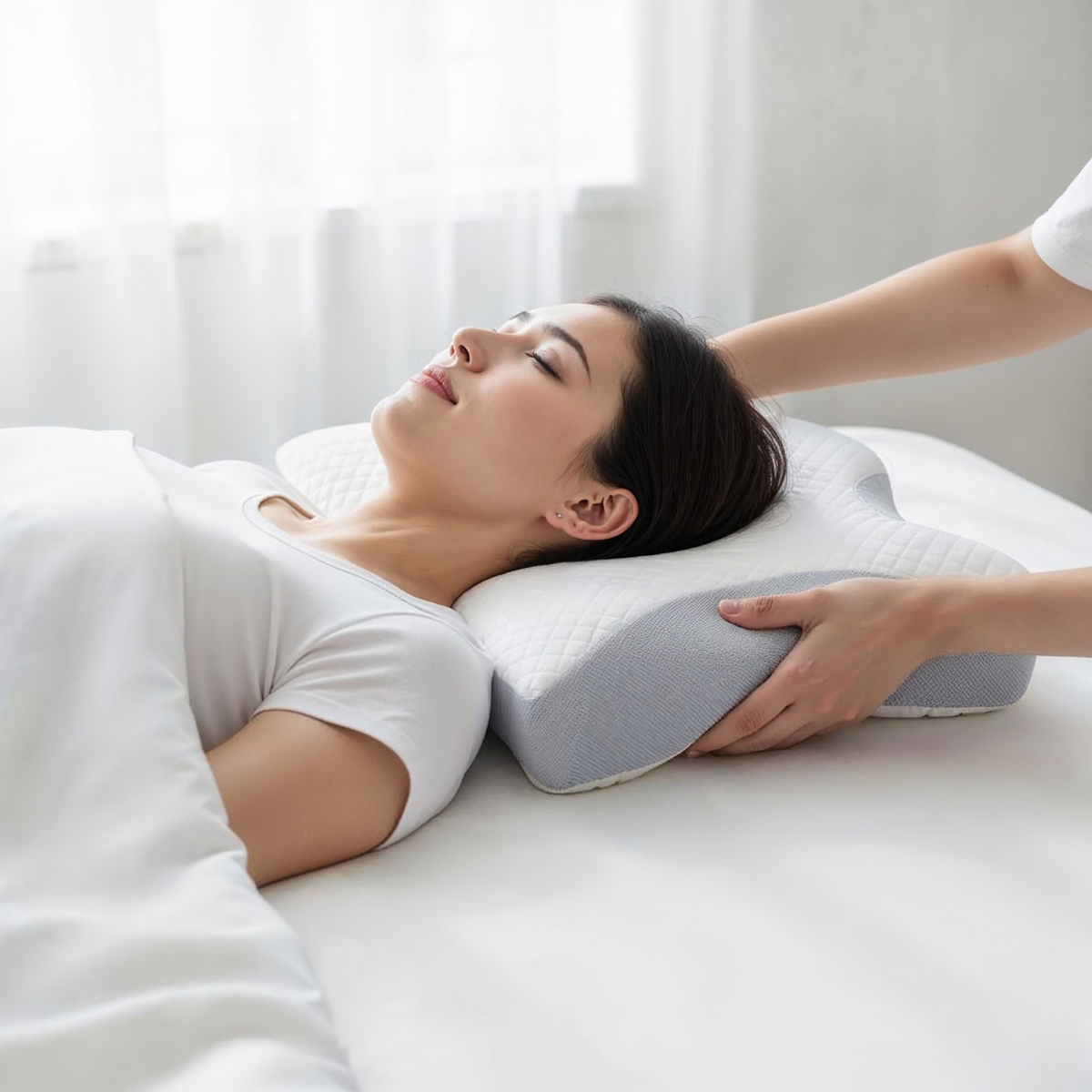 De sloop volgt de vorm van het kussen, zodat de steun voor je nek en schouders precies blijft waar hij hoort.